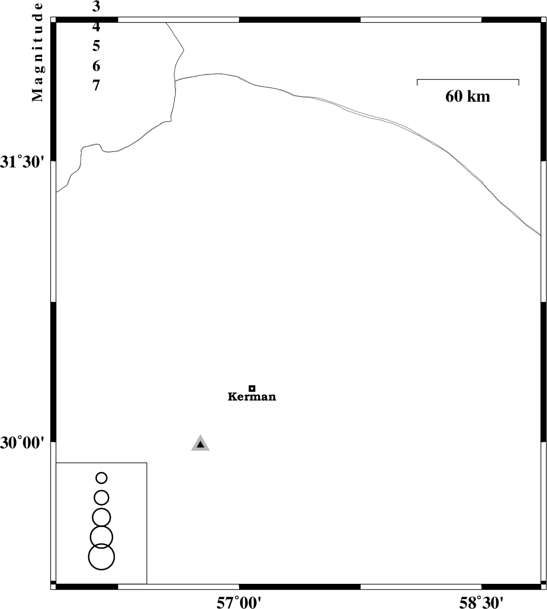 2023/02/09 00:52:34.5 04:22:34.5 30.73257.36612 ML3.6 Kerman Province, 57 km North-East of Kerman