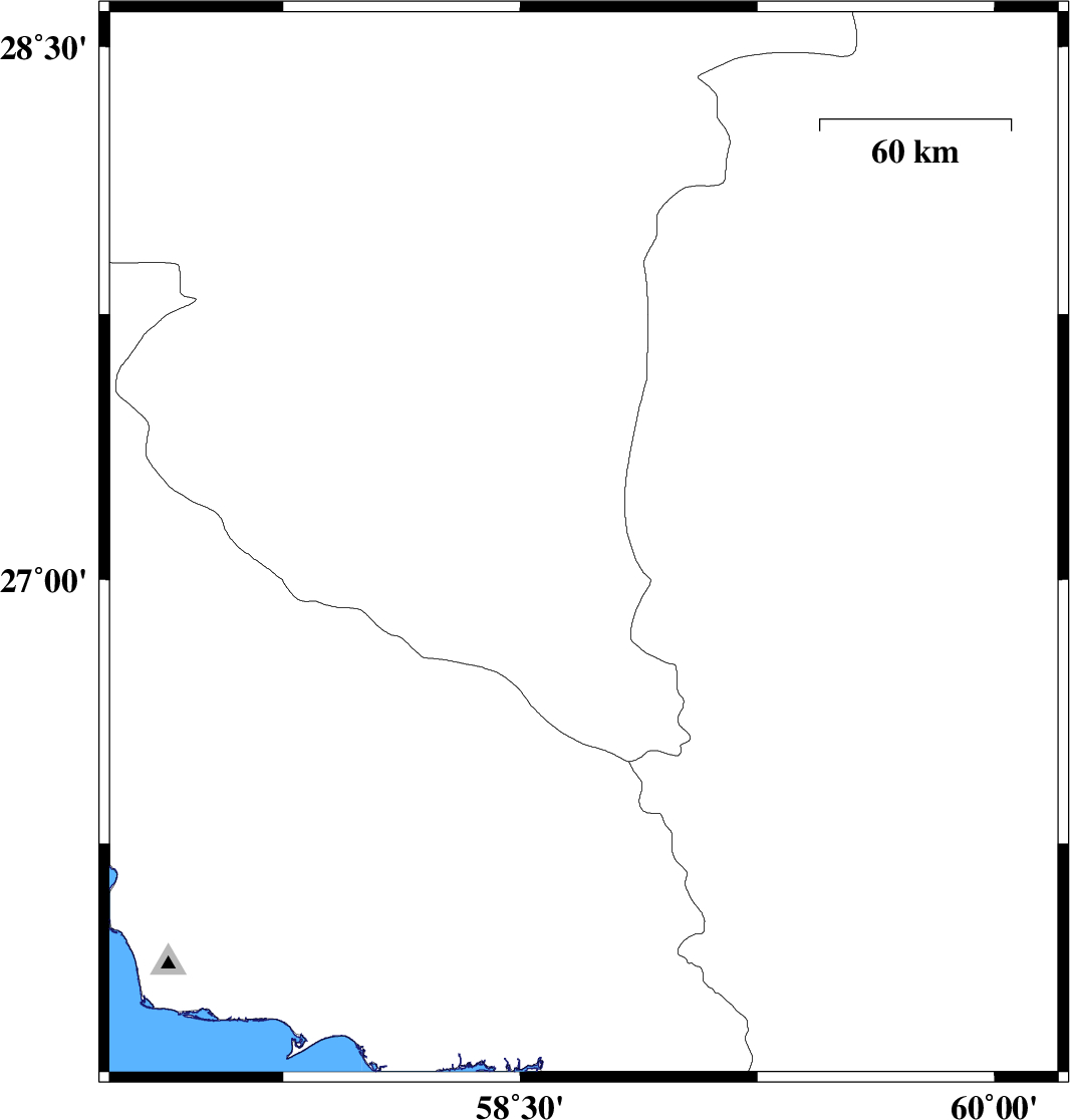 | 2023/01/25 | 17:19:00.8 | 20:49:00.8 | 27.761 | 57.706 | 12 | ML3.3 | Kerman Province, 21 km South of Kahnuj |