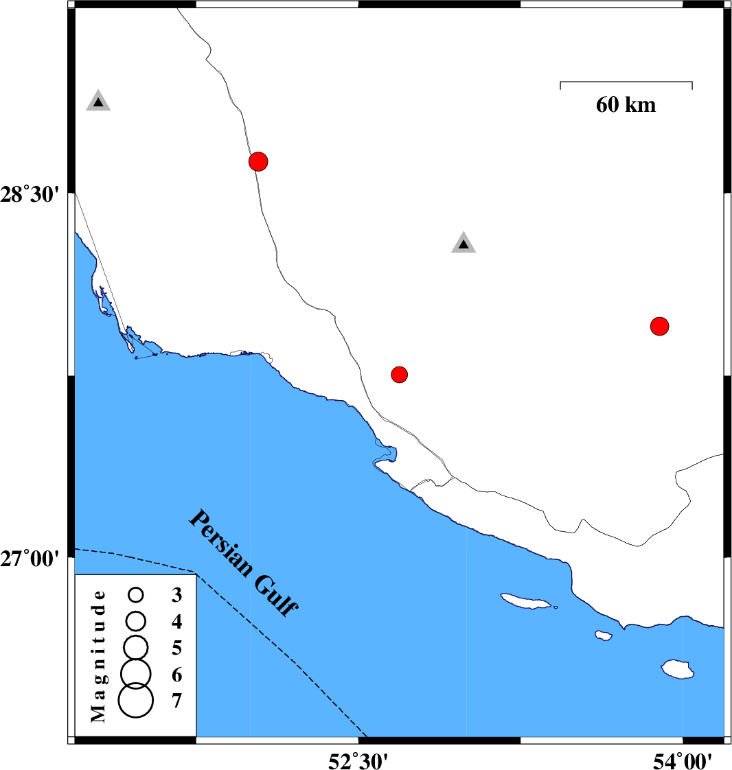 | 2023/02/12 | 18:21:45.8 | 21:51:45.8 | 27.953 | 53.892 | 12 | ML3.8 | Fars Province, 53 km North-West of Lar |