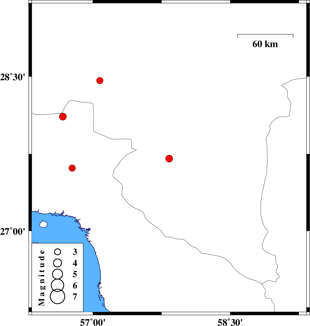 | 2023/03/03 | 02:50:02.2 | 06:20:02.2 | 27.613 | 56.774 | 21 | ML3.3 | Hormozgan Province, 50 km North-West of Dehbarez | ||