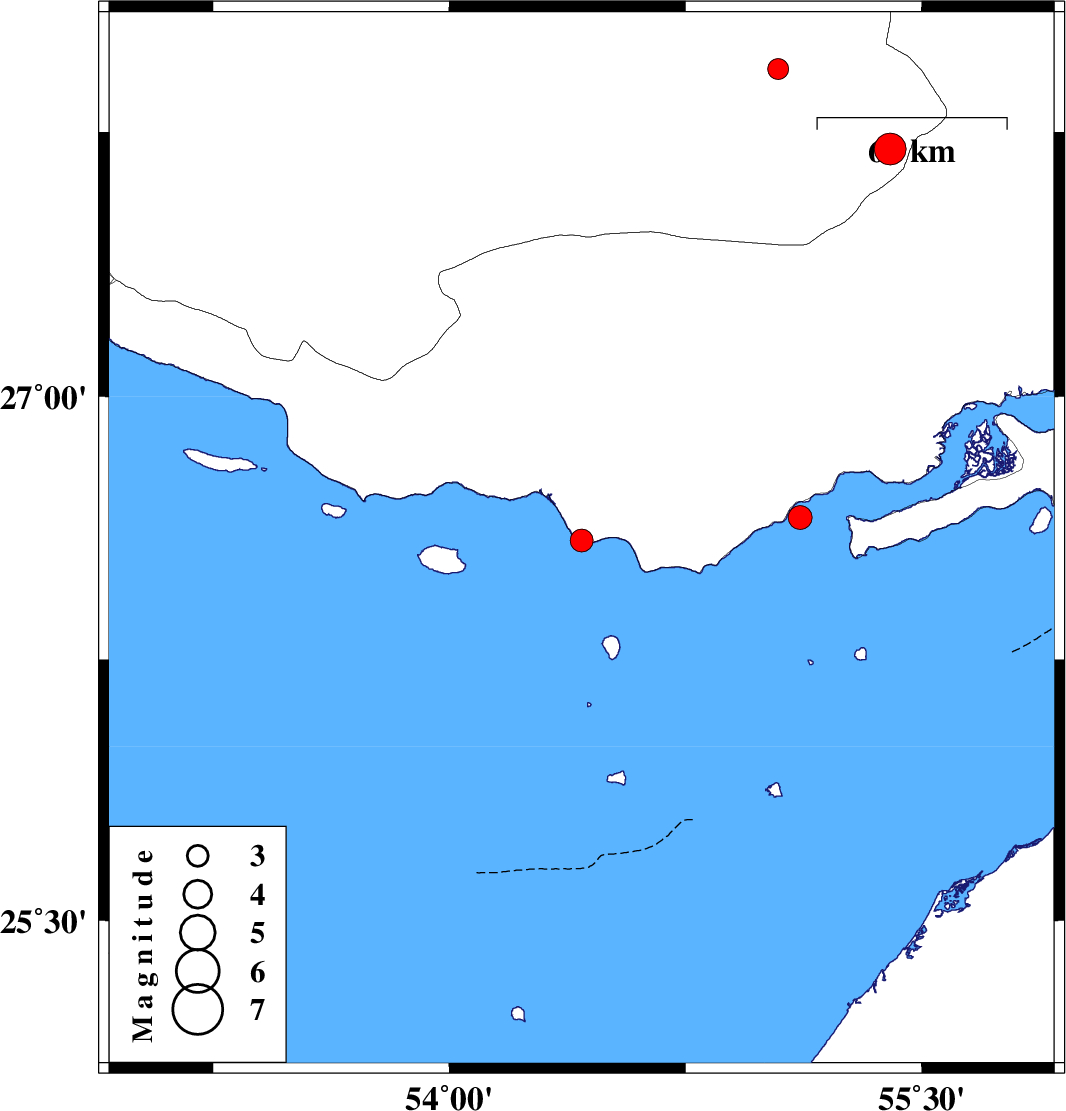 | 2023/03/07 | 17:55:56.0 | 21:25:56.0 | 26.59 | 54.42 | 12 | ML3.2 | Persian Gulf, 43 km -West of Bandar-e lengeh | ||