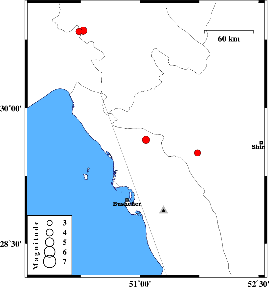 | 2023/03/19 | 08:28:43.4 | 11:58:43.4 | 29.65 | 51.075 | 10 | ML4.3 | Bushehr Province, 45 km North-West of Borazjan | ||