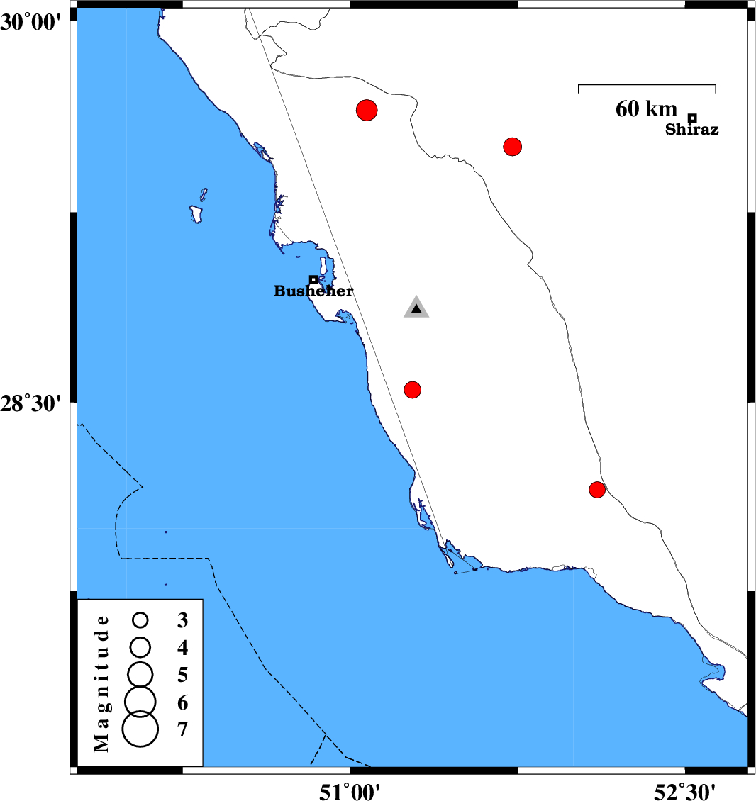 | 2023/03/19 | 08:28:43.4 | 11:58:43.4 | 29.65 | 51.075 | 10 | ML4.3 | Bushehr Province, 45 km North-West of Borazjan | ||