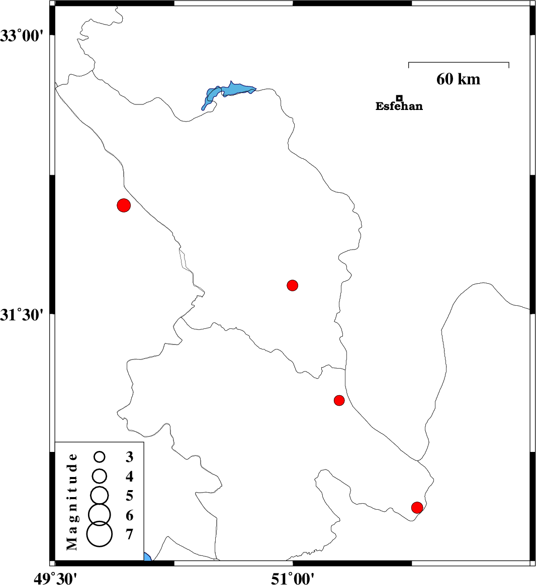 | 2023/03/24 | 11:01:43.4 | 14:31:43.4 | 31.654 | 50.996 | 12 | ML3.1 | Chaharmahal Bakhtiari Province, 25 km North-East of Lordegan | ||