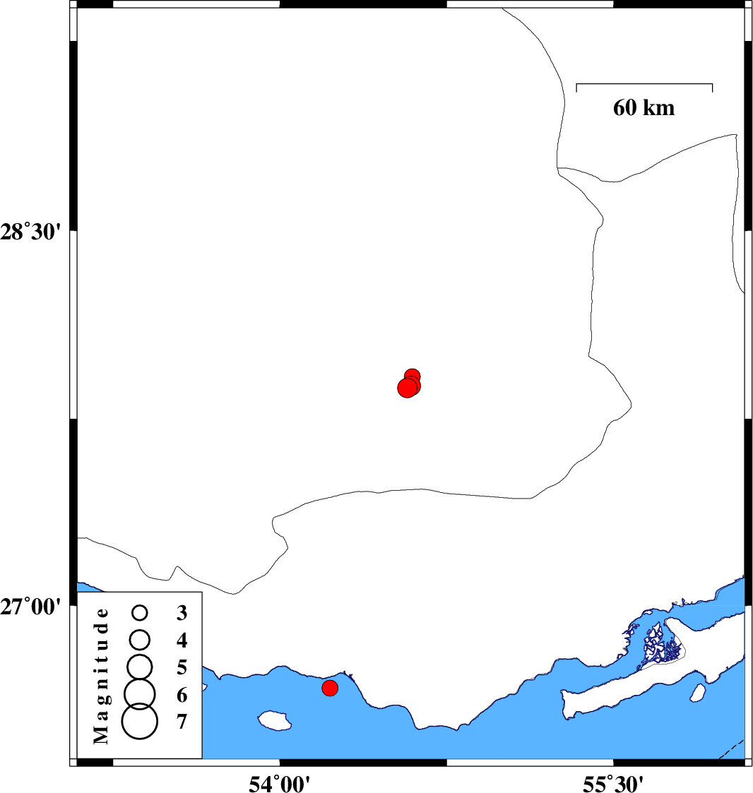 | 2023/03/25 | 01:50:57.9 | 05:20:57.9 | 27.917 | 54.595 | 9 | ML3.3 | Fars Province, 37 km North-East of Lar |