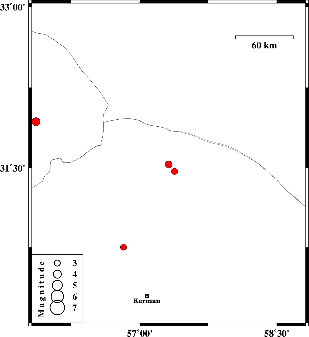 | 2023/03/26 | 03:40:35.7 | 07:10:35.7 | 31.466 | 57.382 | 16 | ML3.1 | Kerman Province, 59 km North-East of Ravar |