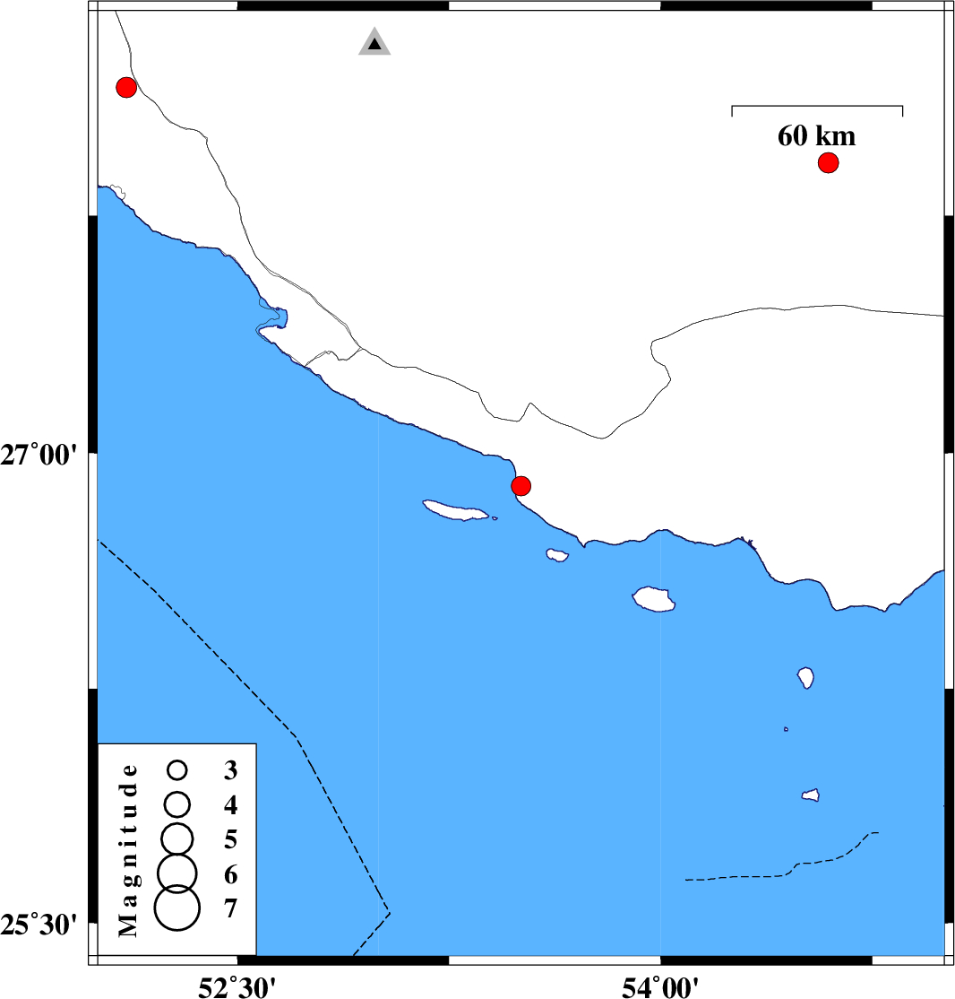 | 2023/03/21 | 17:17:55.7 | 20:47:55.7 | 28.153 | 52.106 | 12 | ML3.2 | Bushehr Province, 37 km North of Bandar-e kangan |