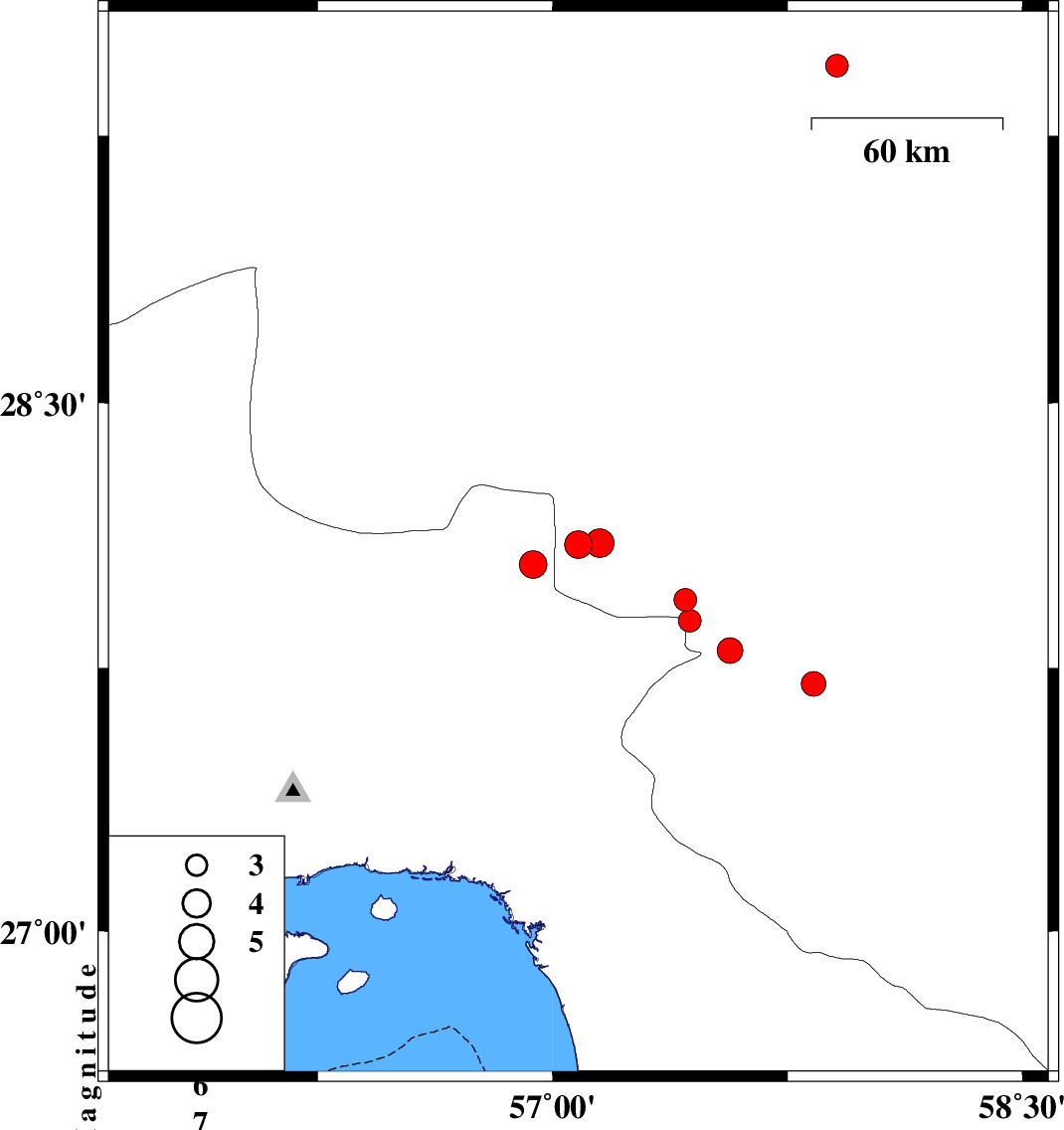 2023/04/04 17:26:08.5 20:56:08.5 28.157.08210 ML4 Kerman Province, 62 km North-West of Kahnuj