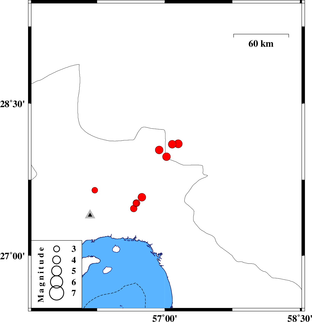 2023/04/07 21:43:52.8 01:13:52.8 27.57756.74622 ML4 Hormozgan Province, 52 km North-West of Dehbarez