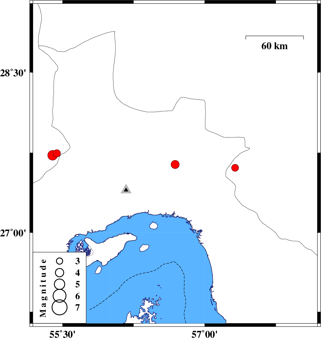 | 2023/04/27 | 10:20:48.8 | 13:50:48.8 | 27.726 | 55.396 | 10 | ML4.6 | Fars Province, 82 km South-West of Hajiabad |