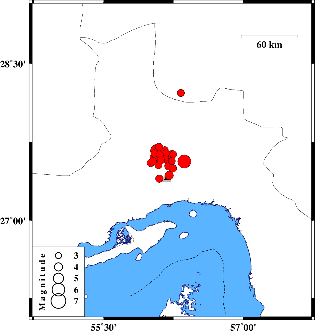 2021/11/14 14:24:16.6 17:54:16.6 27.50156.24310 ML3.8 Hormozgan Province, 35 km North of Bandar-e abbas