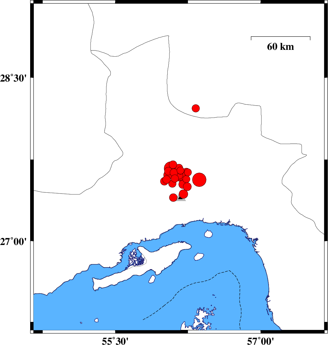 2021/11/14 16:10:08.1 19:40:08.1 27.63656.23412 ML3.7 Hormozgan Province, 50 km North of Bandar-e abbas