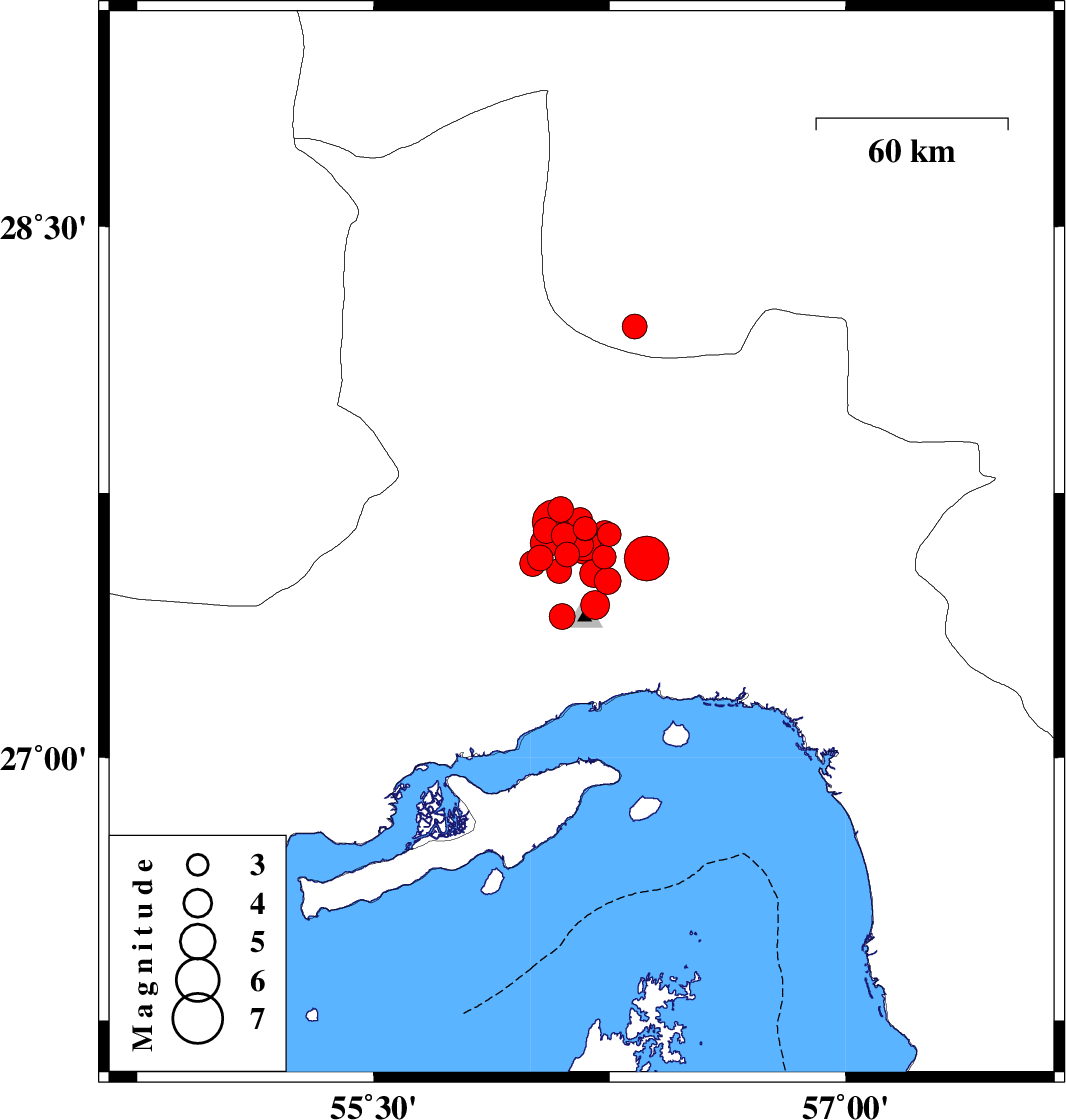 2021/11/14 14:24:16.6 17:54:16.6 27.50156.24310 ML3.8 Hormozgan Province, 35 km North of Bandar-e abbas