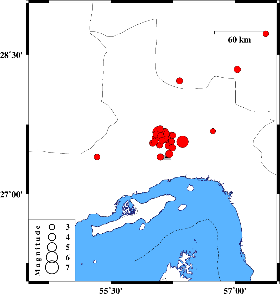 2021/11/14 14:24:16.6 17:54:16.6 27.50156.24310 ML3.8 Hormozgan Province, 35 km North of Bandar-e abbas