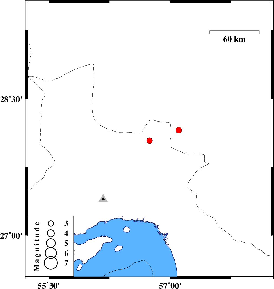 | 2023/05/14 | 01:01:29.6 | 04:31:29.6 | 28.043 | 56.744 | 12 | ML3.3 | Hormozgan Province, 94 km -West of Kahnuj |
