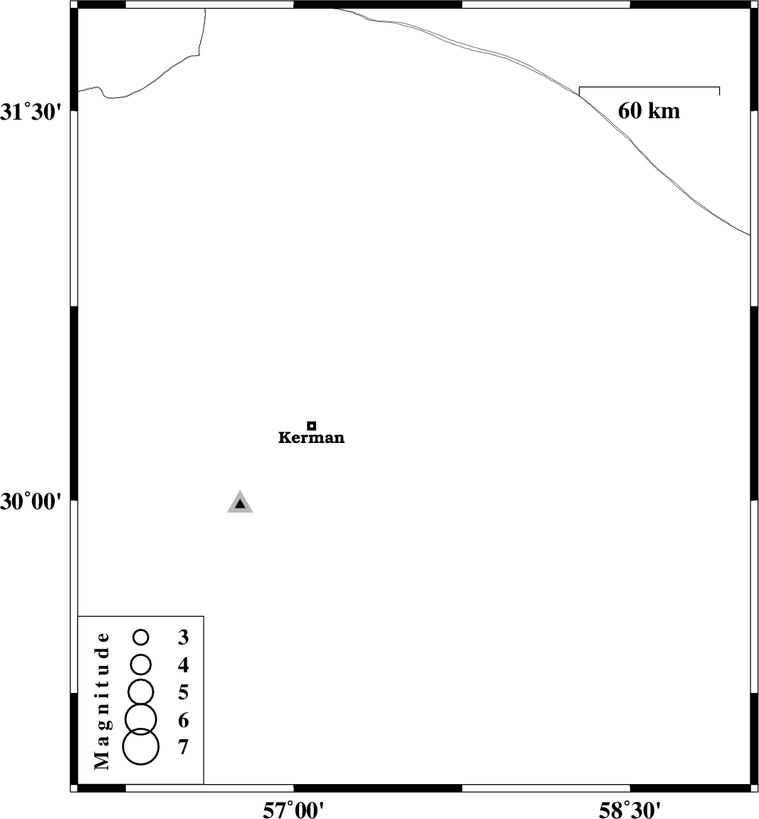 | 2023/05/18 | 13:48:57.1 | 17:18:57.1 | 30.391 | 57.536 | 8 | ML3.8 | Kerman Province, 45 km North-East of Kerman |