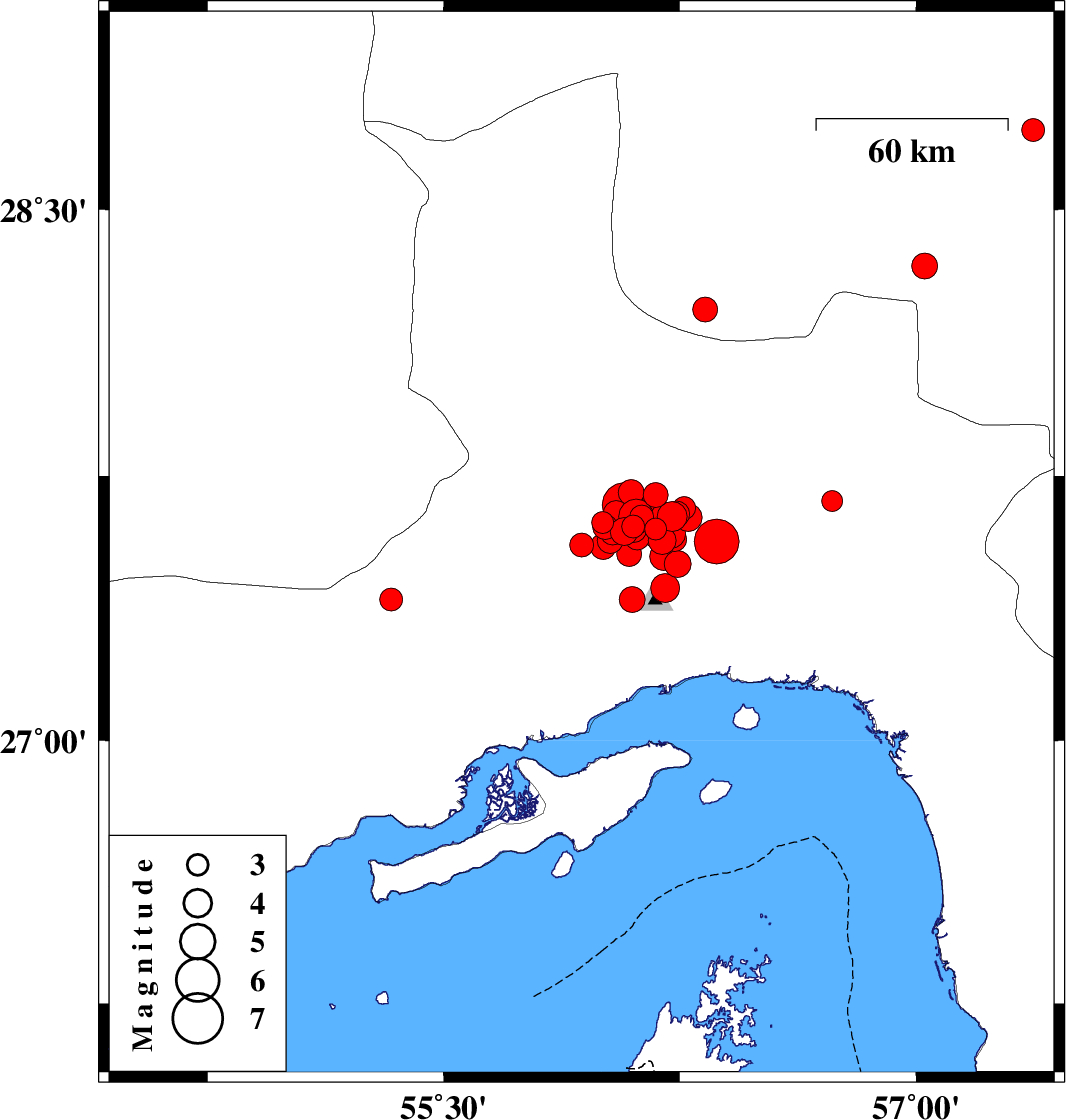 2021/11/14 13:05:53.8 16:35:53.8 27.40156.0999 ML3.7 Hormozgan Province, 30 km North-West of Bandar-e abbas