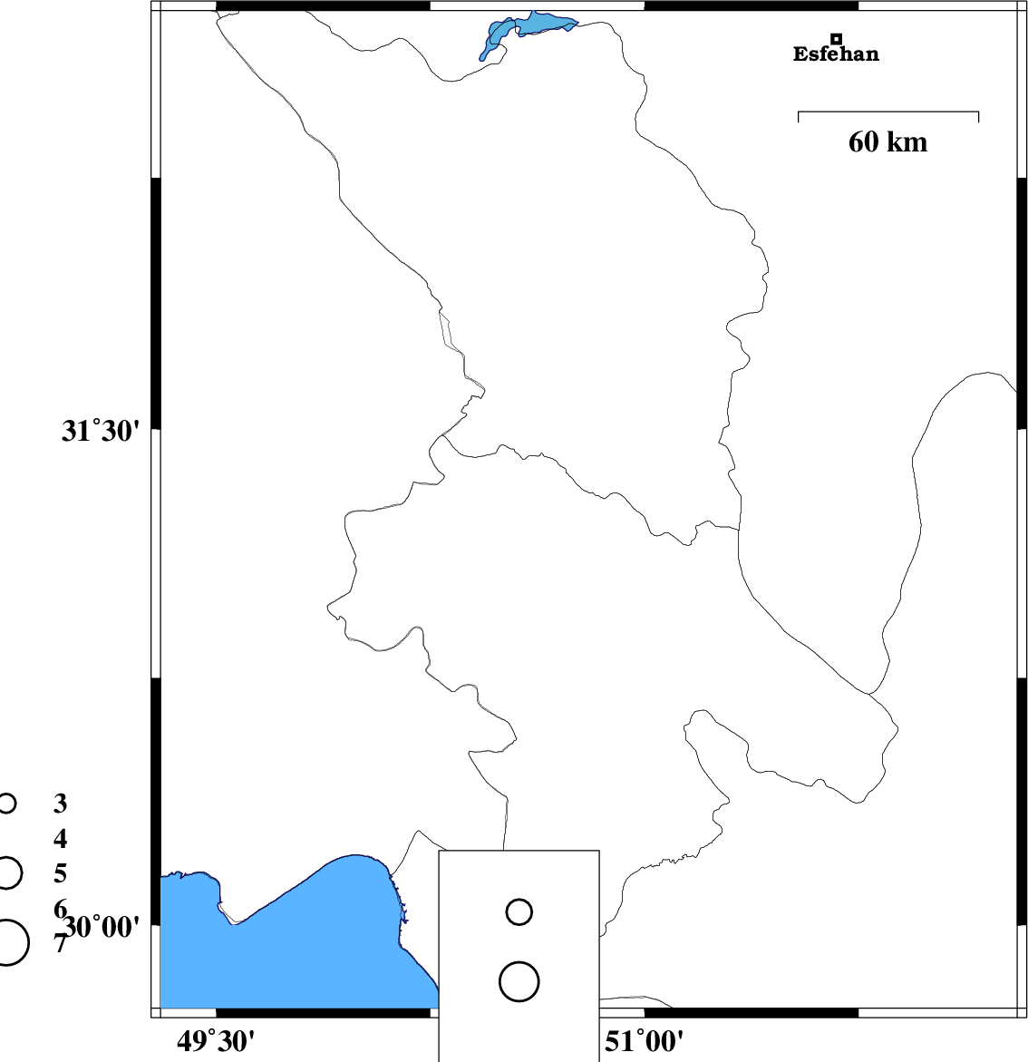 | 2023/05/14 | 07:41:46.4 | 11:11:46.4 | 30.303 | 51.911 | 8 | ML3.7 | Fars Province, 9 km of Ardakan | ||