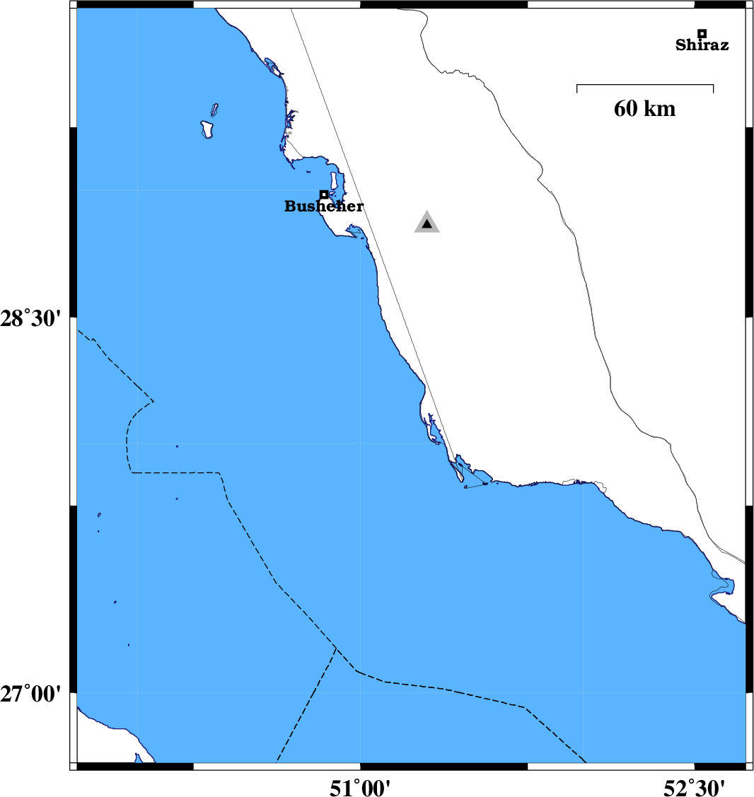 2023/05/27 08:25:28.8 11:55:28.8 28.21851.22810 ML3.9 Persian Gulf, 50 km South-West of Khormog