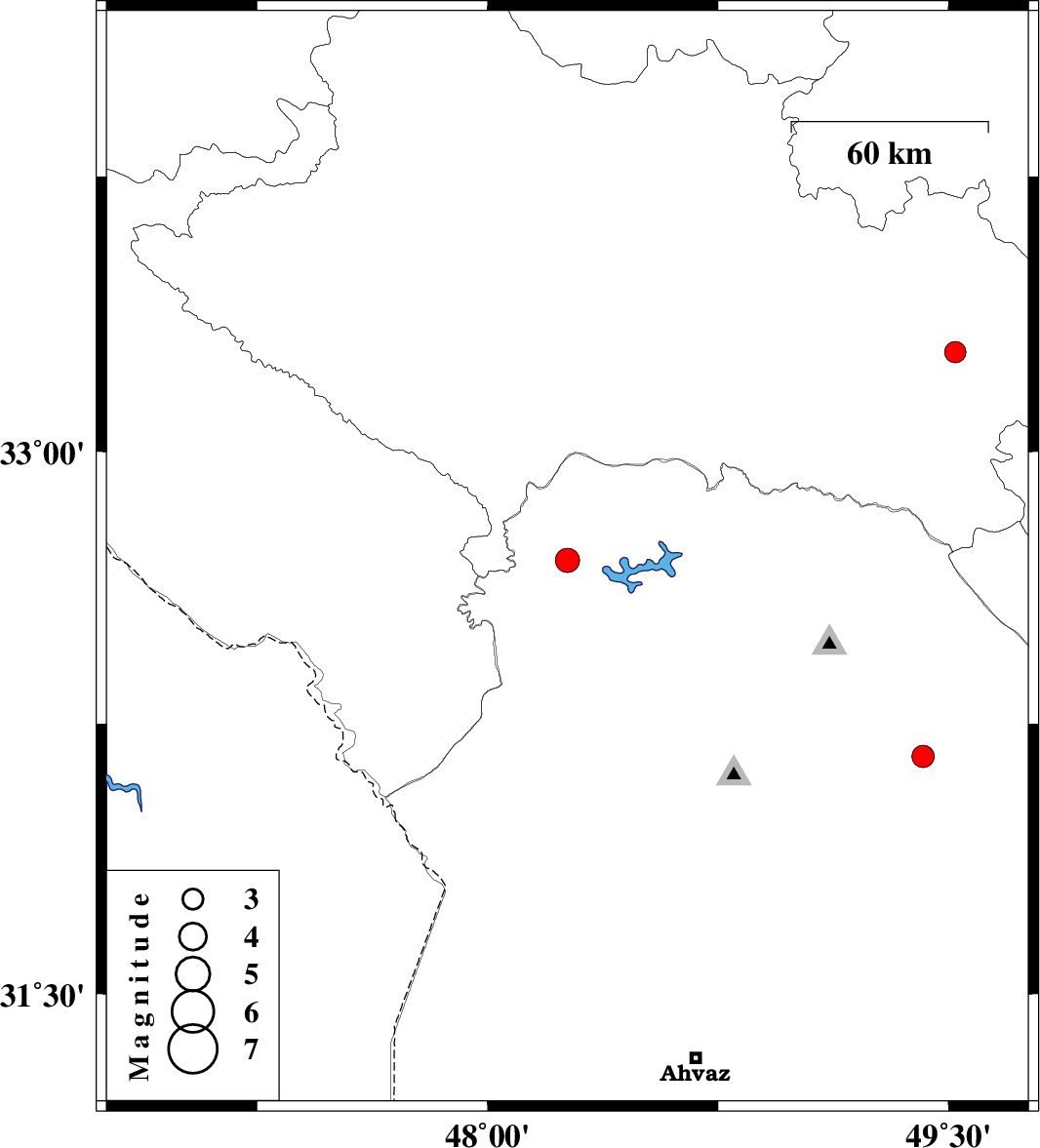 | 2023/06/04 | 16:22:10.1 | 19:52:10.1 | 32.701 | 48.26 | 12 | ML3.5 | Khoozestan Province, 28 km North of Andimeshk | ||