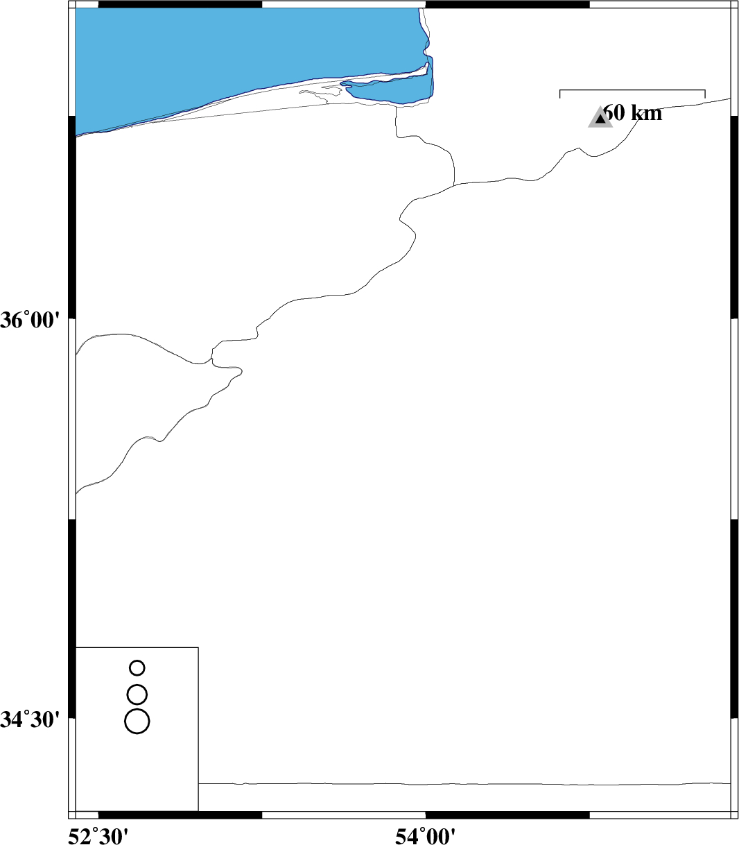 | 2023/06/01 | 15:36:29.4 | 19:06:29.4 | 35.646 | 53.896 | 8 | ML3.4 | Semnan Province, 46 km -East of Semnan |