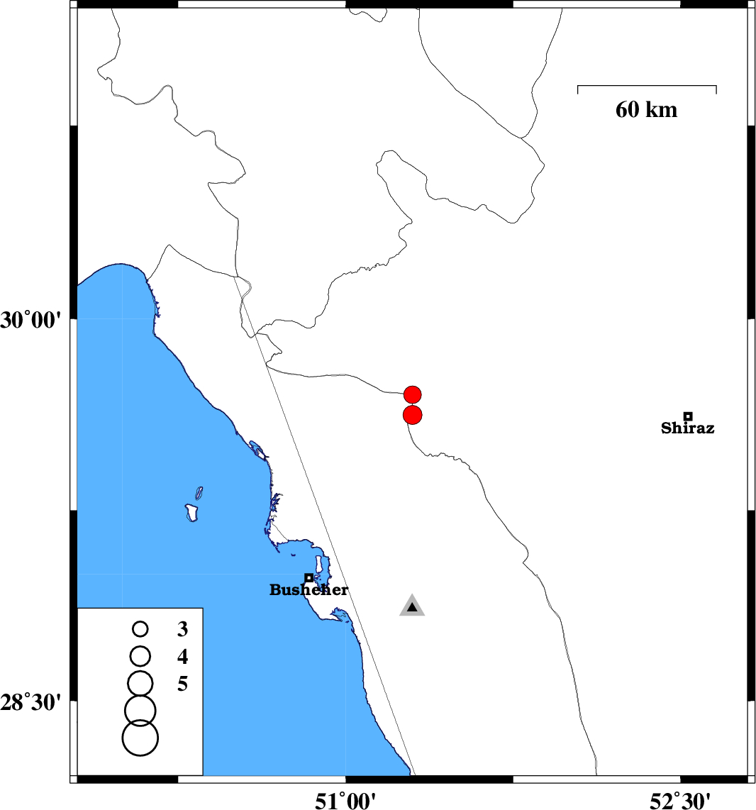 2023/06/05 09:58:49.5 13:28:49.5 29.62551.29916 ML3.8 Fars Province, 34 km -West of Kazerun