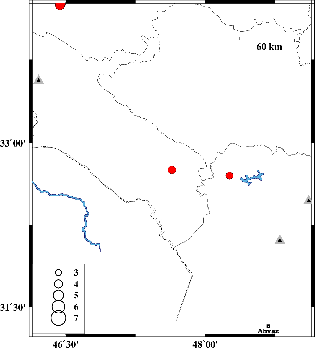 | 2023/06/06 | 13:24:36.5 | 16:54:36.5 | 32.753 | 47.641 | 12 | ML3.8 | Ilam Province, 25 km South-East of Abdanan | ||