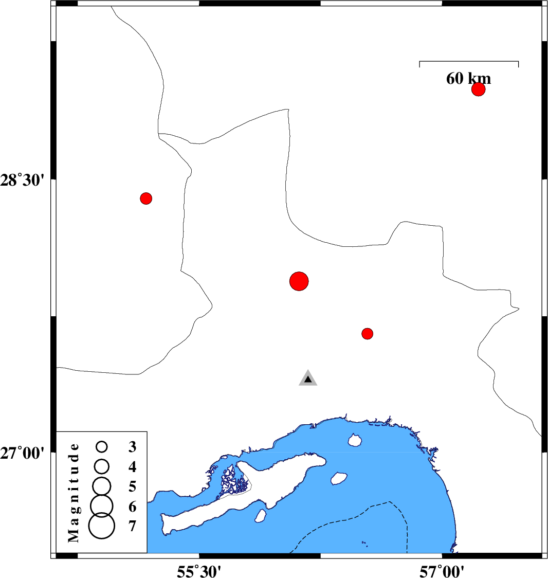 | 2023/06/21 | 05:12:23.7 | 08:42:23.7 | 27.941 | 56.116 | 17 | ML5.2 | Hormozgan Province, 46 km South-East of Hajiabad | ||