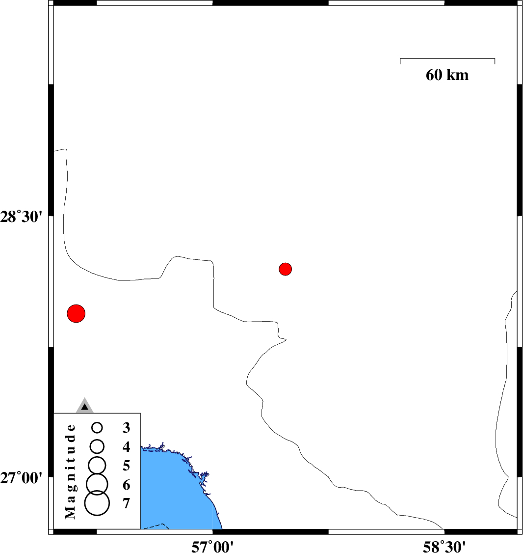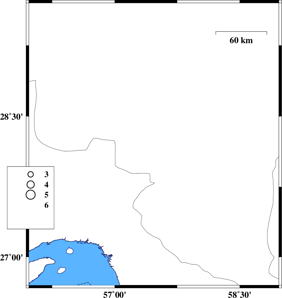 | 2023/06/23 | 05:17:10.8 | 08:47:10.8 | 28.196 | 57.47 | 10 | ML3.6 | Kerman Province, 35 km North-West of Kahnuj | ||