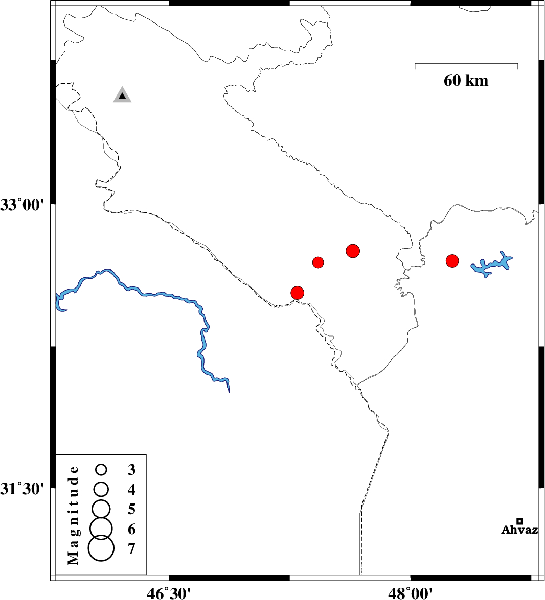 | 2023/06/04 | 16:22:10.1 | 19:52:10.1 | 32.701 | 48.26 | 12 | ML3.5 | Khoozestan Province, 28 km North of Andimeshk |