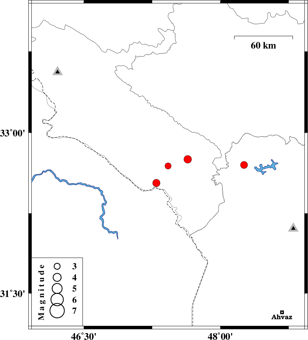 | 2023/06/04 | 16:22:10.1 | 19:52:10.1 | 32.701 | 48.26 | 12 | ML3.5 | Khoozestan Province, 28 km North of Andimeshk |