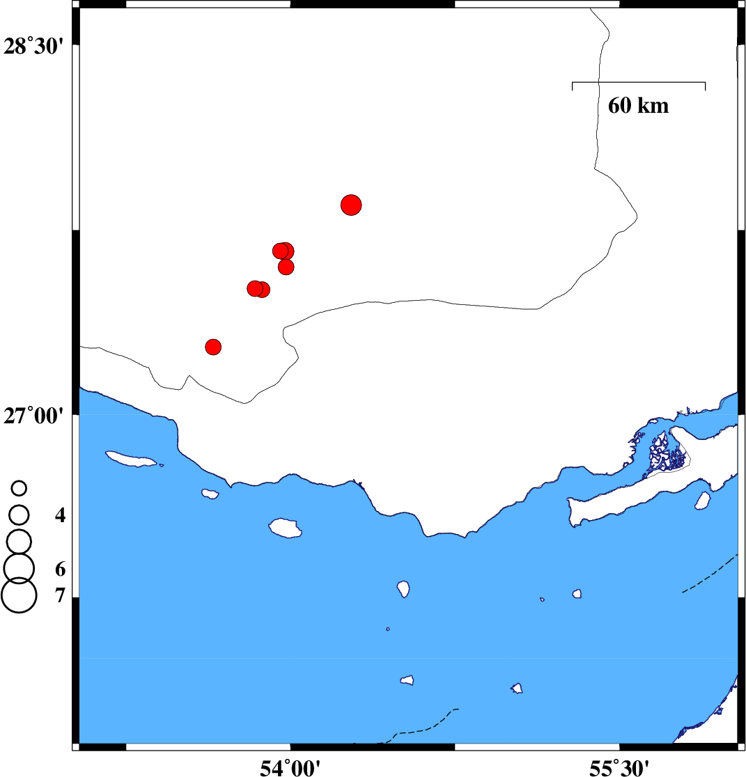 2023/06/26 06:35:38.7 10:05:38.7 27.14954.53810 ML3.3 Hormozgan Province, 18 km -East of Bastak