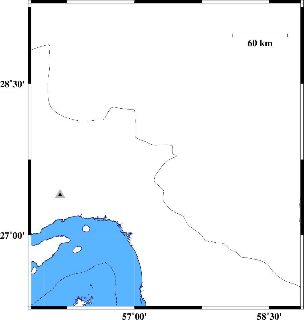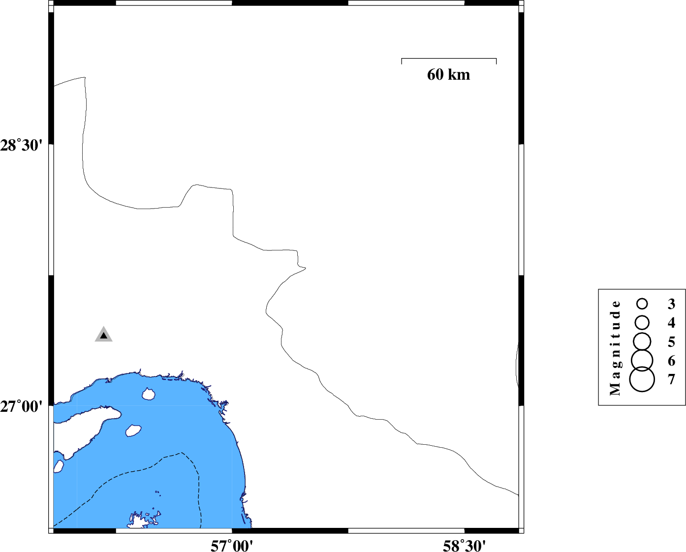 | 2023/07/06 | 15:09:53.8 | 18:39:53.8 | 27.789 | 57.349 | 12 | ML3.2 | Hormozgan Province, 42 km North-East of Dehbarez | ||