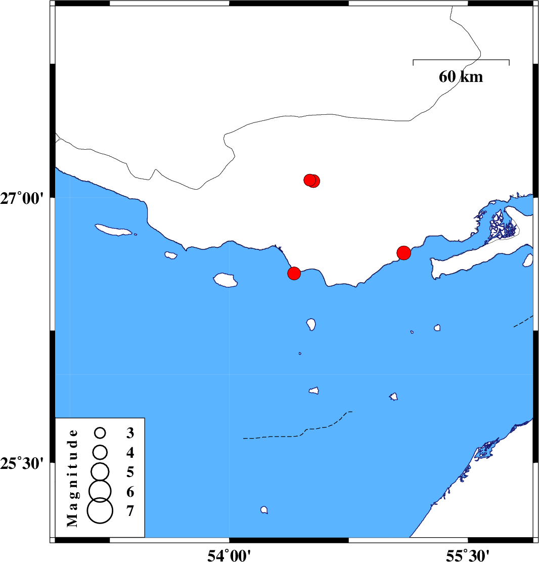 | 2023/07/02 | 09:07:37.8 | 12:37:37.8 | 26.689 | 55.096 | 12 | ML3.9 | , 31 km North-East of Bandar-e lengeh |