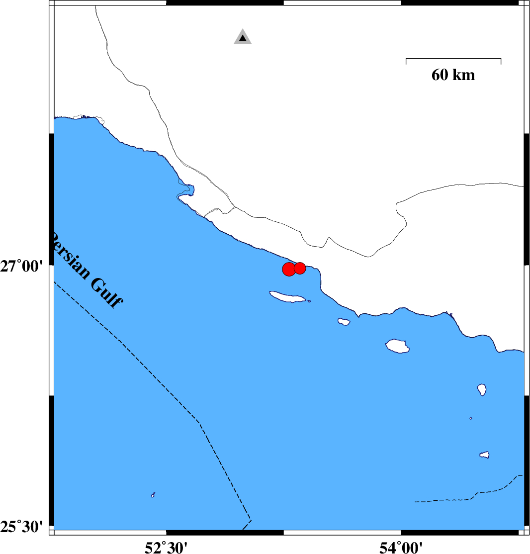 2023/07/25 10:23:34.1 13:53:34.1 26.97553.28412 ML3.9 Persian Gulf, 41 km South-East of Lamerd