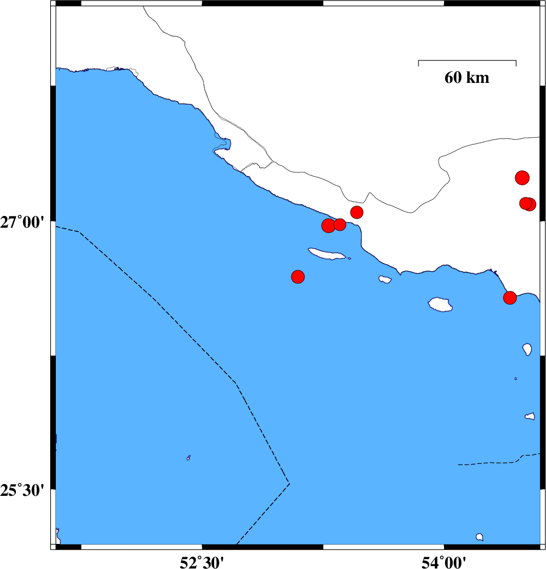Persian Gulf, 44 km -West of Bandar-e lengeh | |