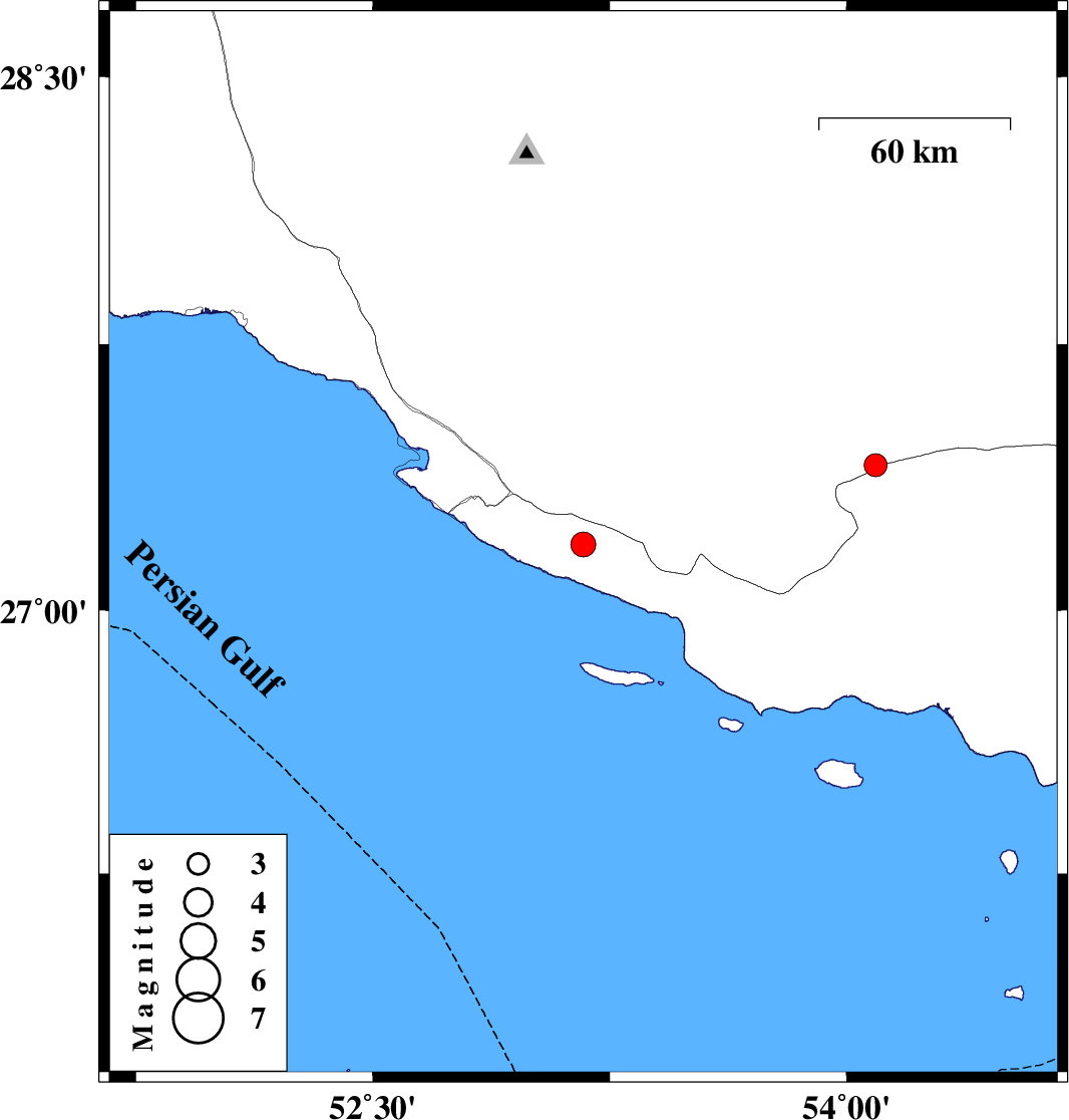 | 2023/08/08 | 23:08:07.6 | 02:38:07.6 | 27.185 | 53.166 | 8 | ML3.5 | Hormozgan Province, 16 km South of Lamerd |
