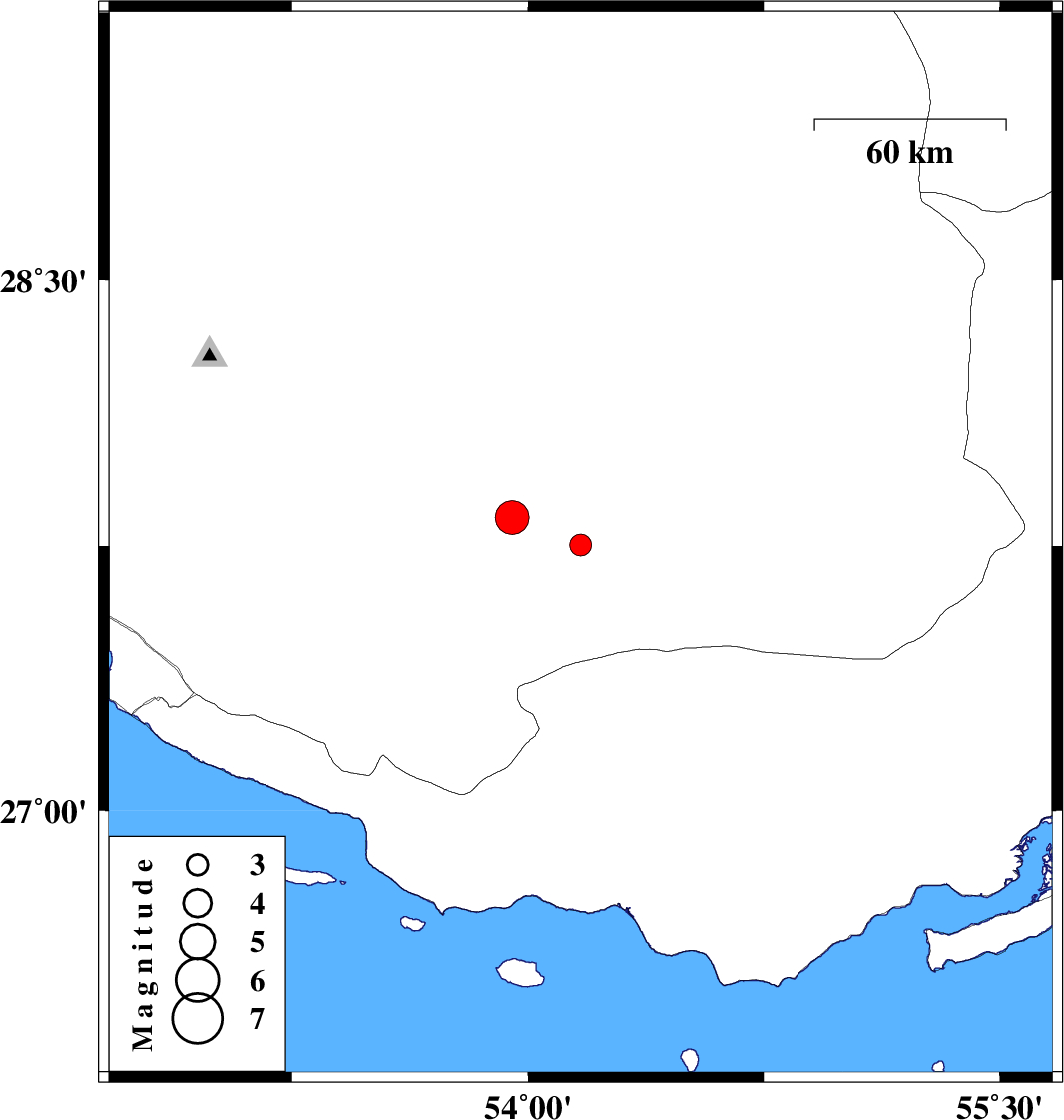 | 2023/08/19 | 00:11:06.2 | 03:41:06.2 | 27.753 | 54.167 | 12 | ML3.1 | Fars Province, 19 km -West of Lar | ||