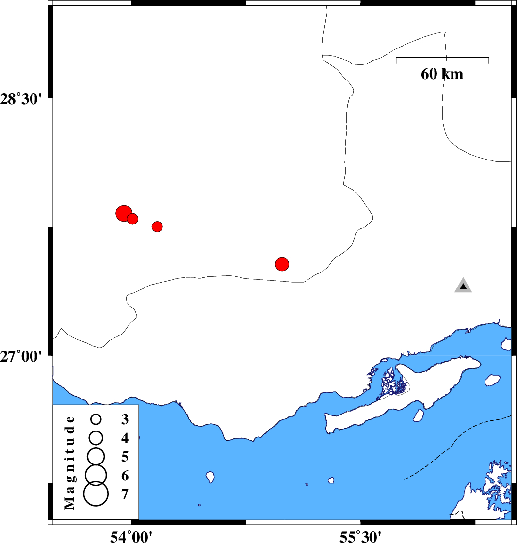 | 2023/08/20 | 08:48:23.2 | 12:18:23.2 | 27.534 | 54.985 | 12 | ML4 | Fars Province, 66 km South-East of Lar | ||