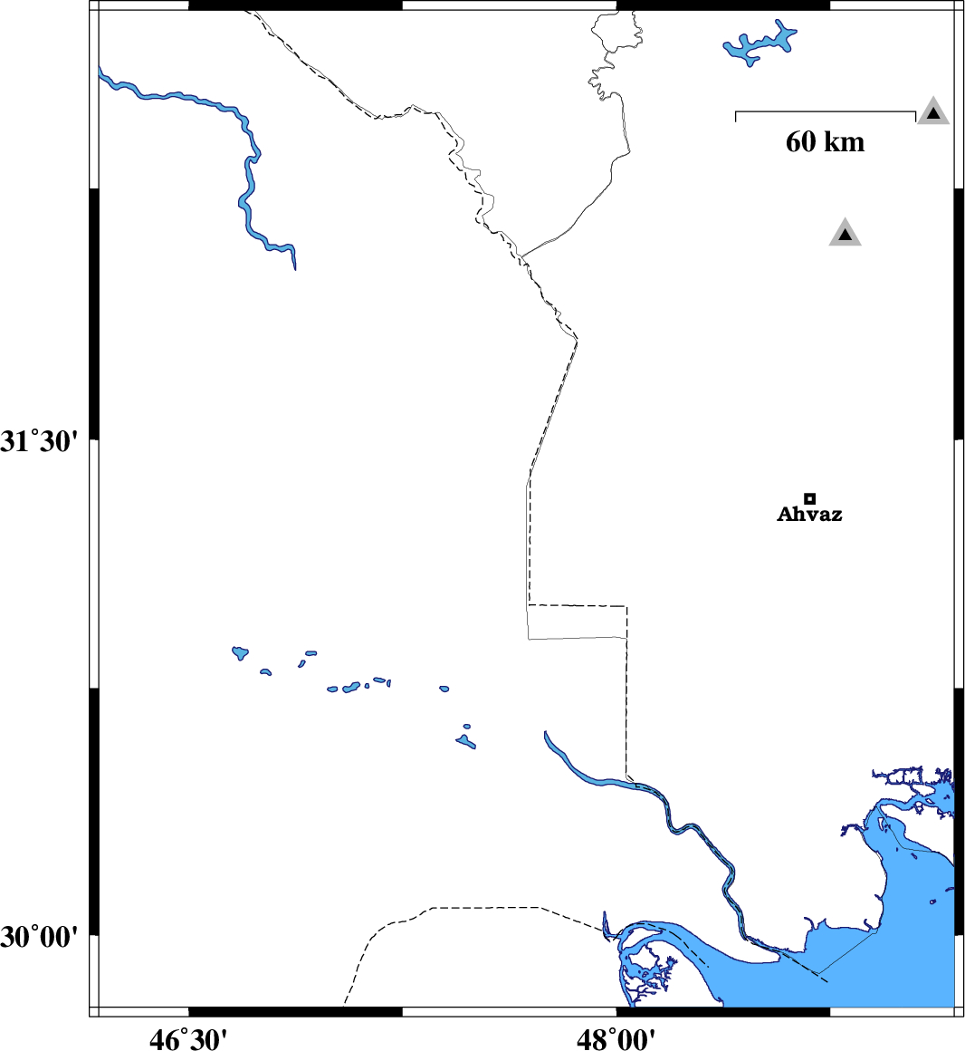 Map Region : lat:29.78-32.78  lon:46.184-49.184