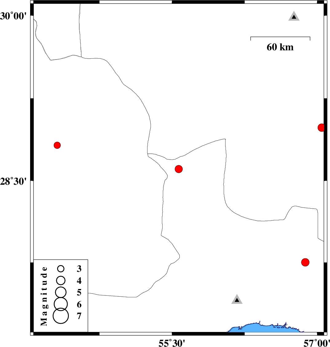 | 2021/04/17 | 06:01:57.4 | 10:31:57.4 | 28.985 | 57.047 | 12 | ML3.7 | Kerman Province, 51 km South-East of Baft |