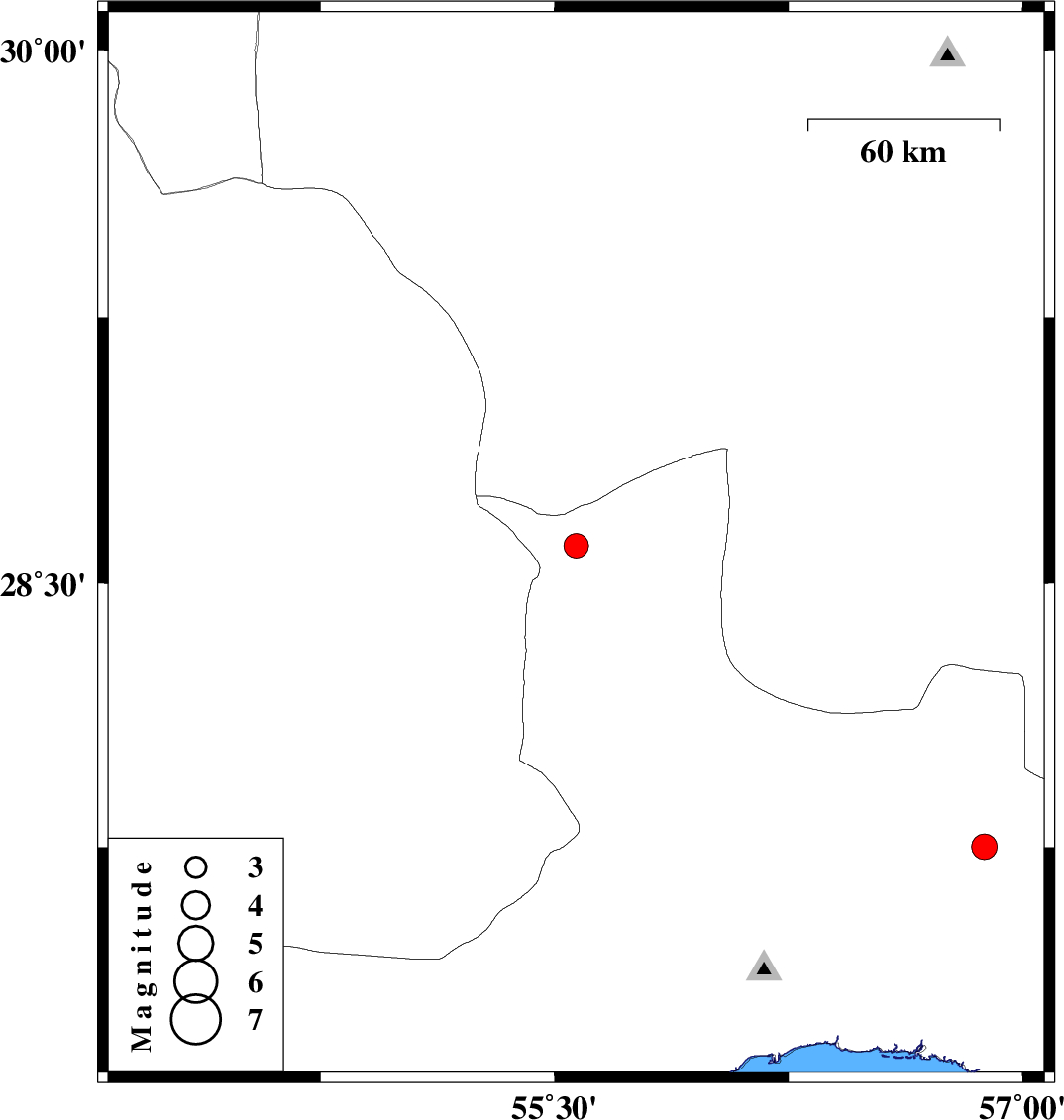 | 2021/05/14 | 12:52:52.1 | 17:22:52.1 | 28.607 | 55.569 | 12 | ML3.5 | Hormozgan Province, 46 km North-West of Hajiabad | ||