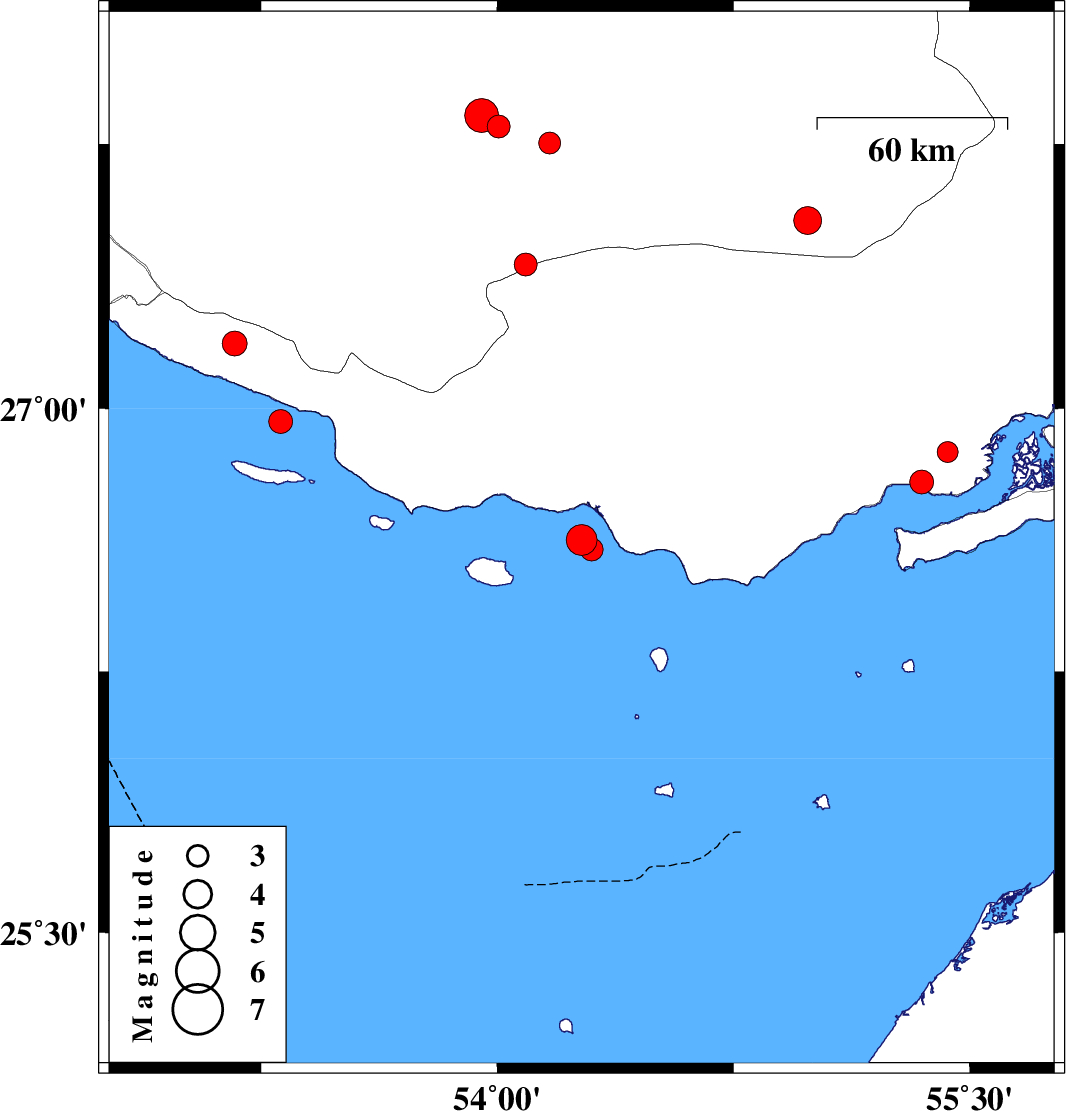 2023/09/02 01:23:43.2 04:53:43.2 26.59854.310 ML3.2 Persian Gulf, 55 km -West of Bandar-e lengeh