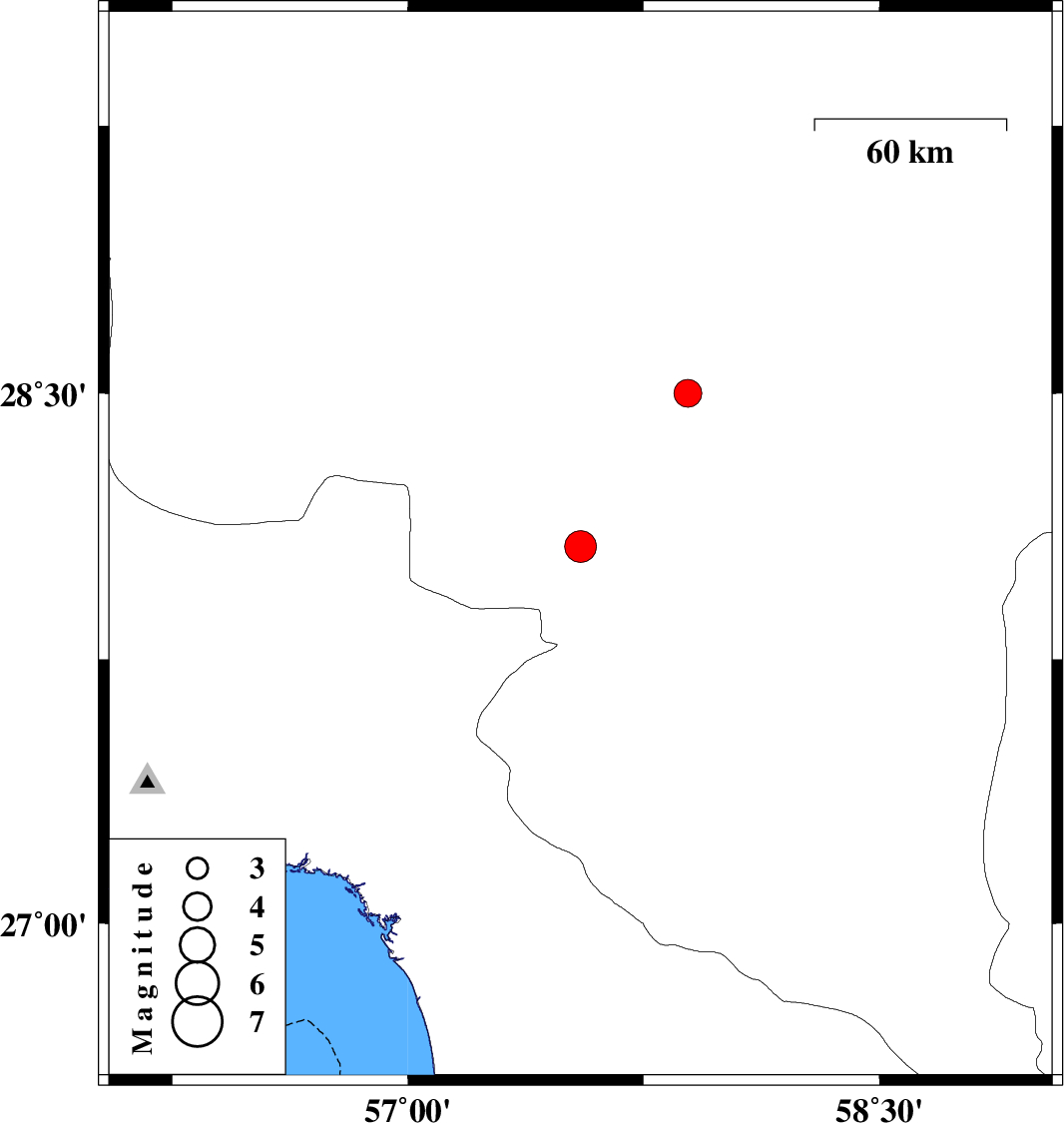| 2023/09/02 | 14:30:37.9 | 18:00:37.9 | 28.069 | 57.549 | 19 | ML4.5 | Kerman Province, 19 km North-West of Kahnuj | ||