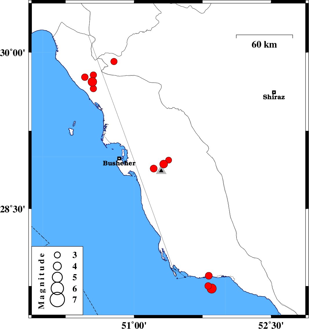2023/09/05 07:28:06.2 10:58:06.2 29.71950.54315 ML4.4 Bushehr Province, 16 km North of Bandar-e genaveh