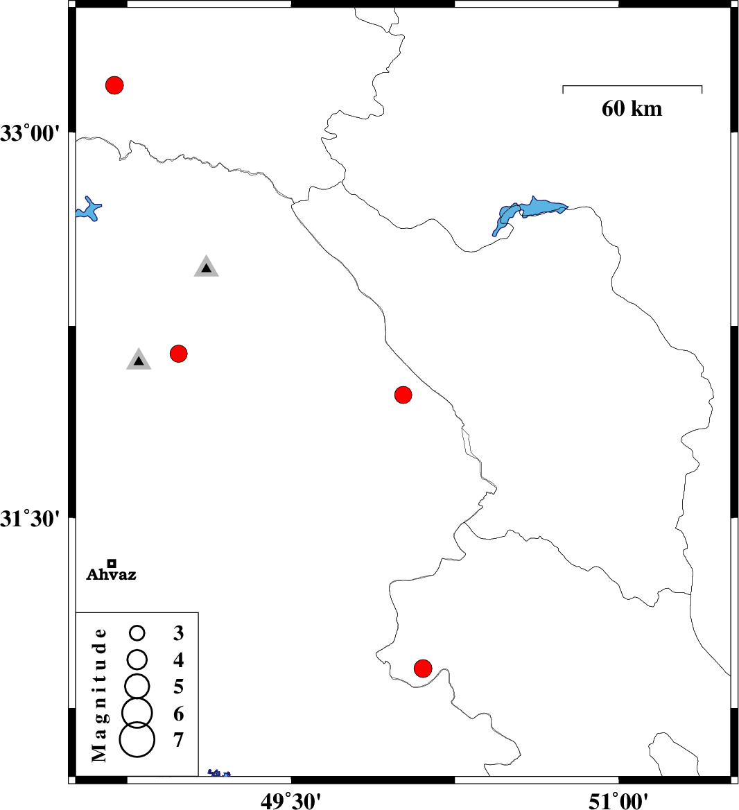 | 2023/09/01 | 06:55:05.0 | 10:25:05.0 | 32.142 | 48.985 | 9 | ML3.5 | Khoozestan Province, 17 km North-East of Shushtar | ||