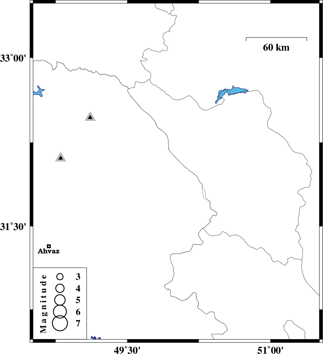 | 2023/09/19 | 14:05:08.1 | 17:35:08.1 | 31.98 | 50.013 | 12 | ML3.5 | Khoozestan Province, 21 km North-East of Izeh |