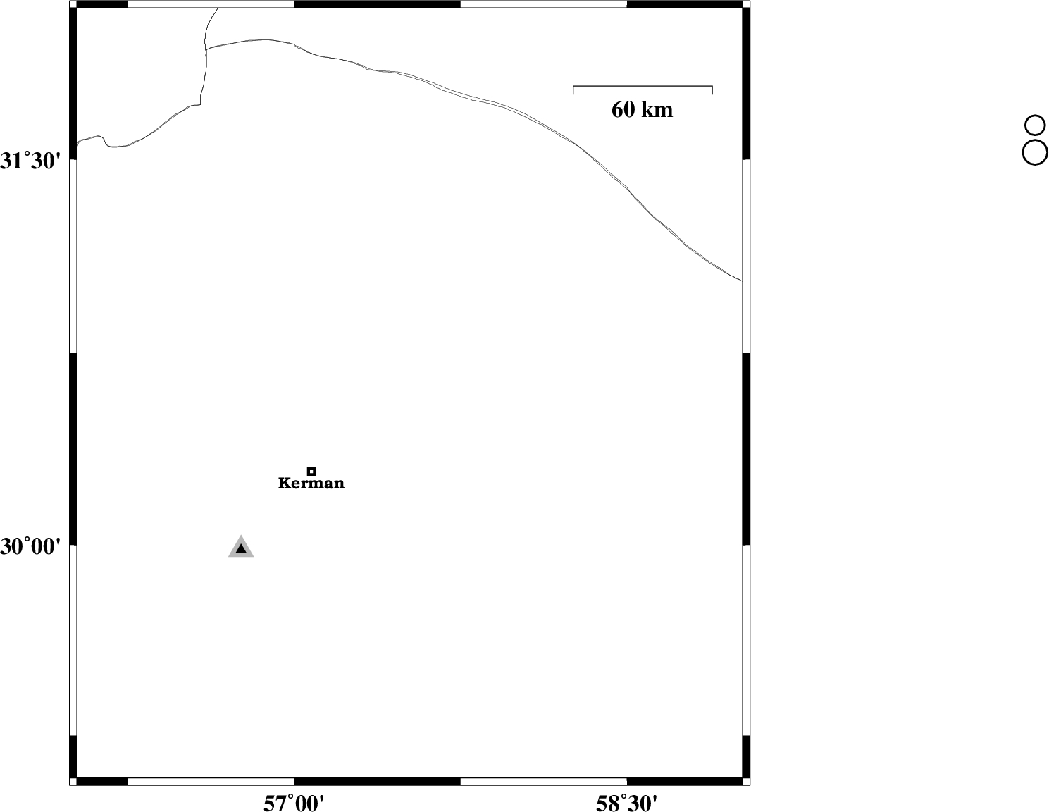 | 2023/08/30 | 02:44:37.8 | 06:14:37.8 | 30.777 | 56.534 | 7 | ML3 | Kerman Province, 5 km of Zarand |