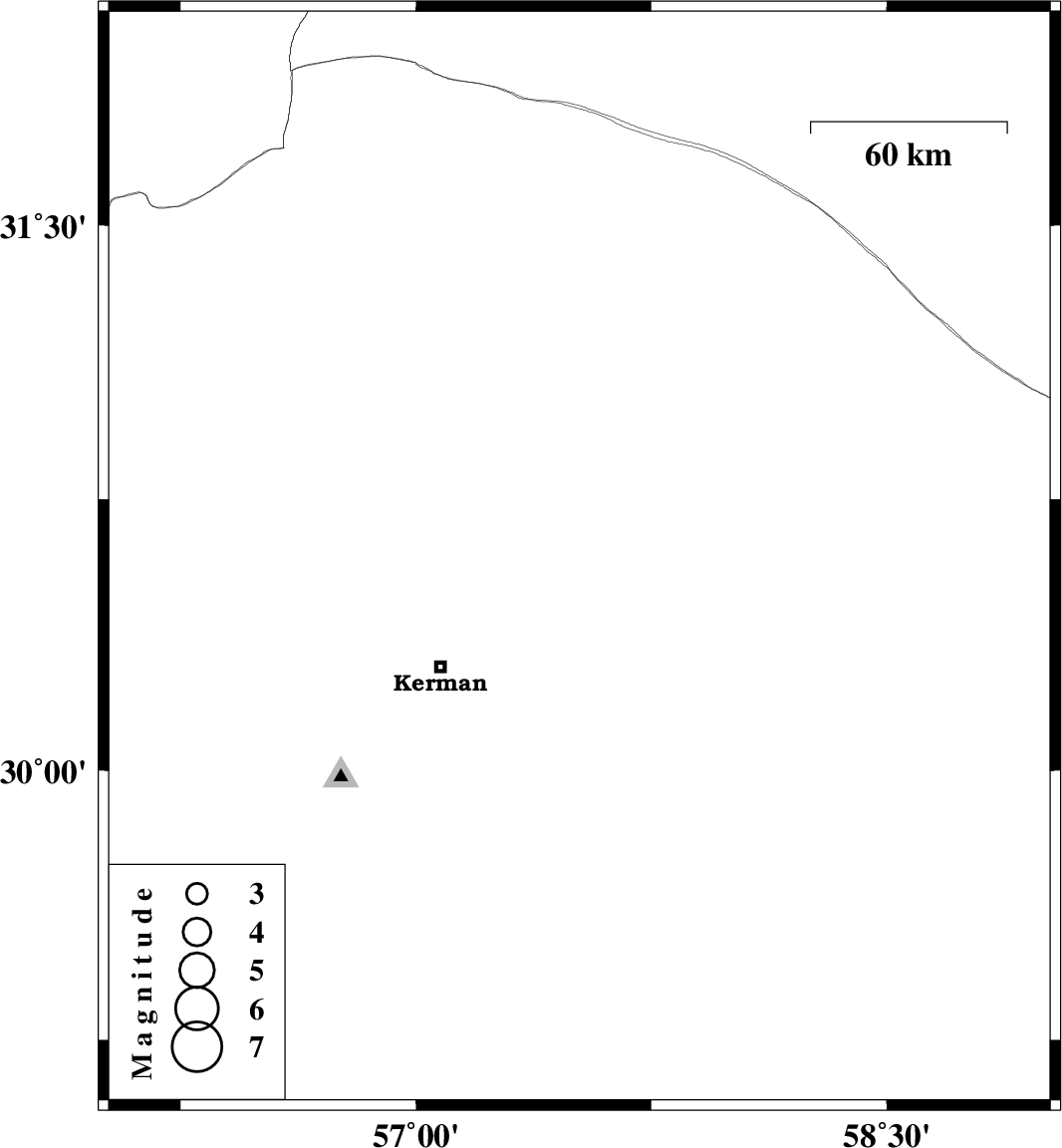 | 2023/09/21 | 17:08:10.9 | 20:38:10.9 | 30.583 | 57.521 | 12 | ML3 | Kerman Province, 54 km North-East of Kerman |
