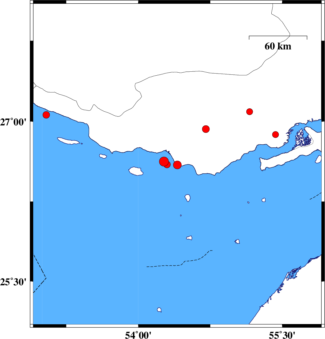 Persian Gulf, 55 km -West of Bandar-e lengeh | |